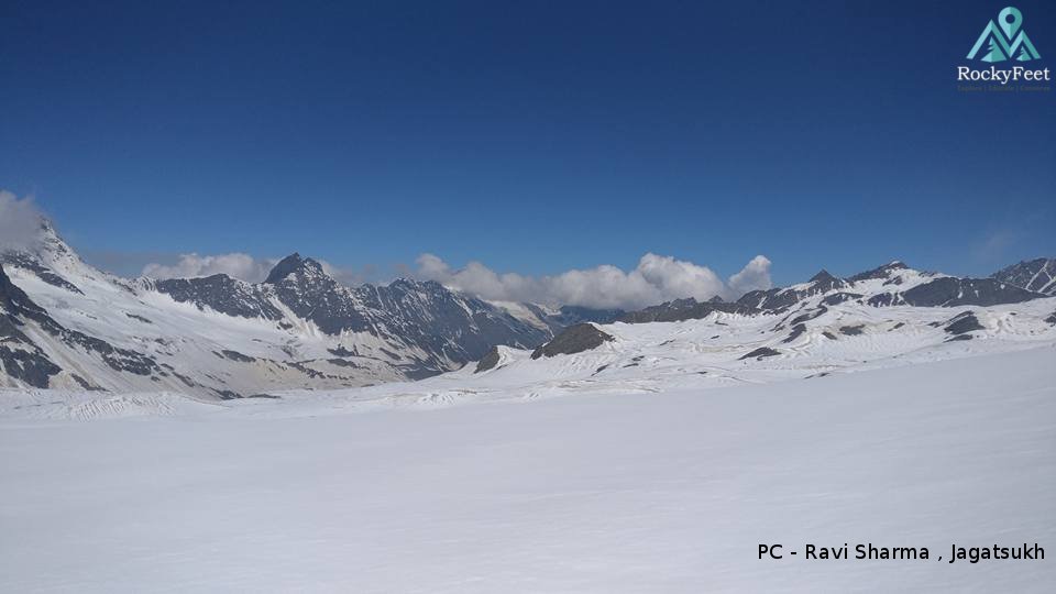 The highest peak in the region is the pyramid shaped daunting Hanuman tibba(5932 m) to the north of Ravi.