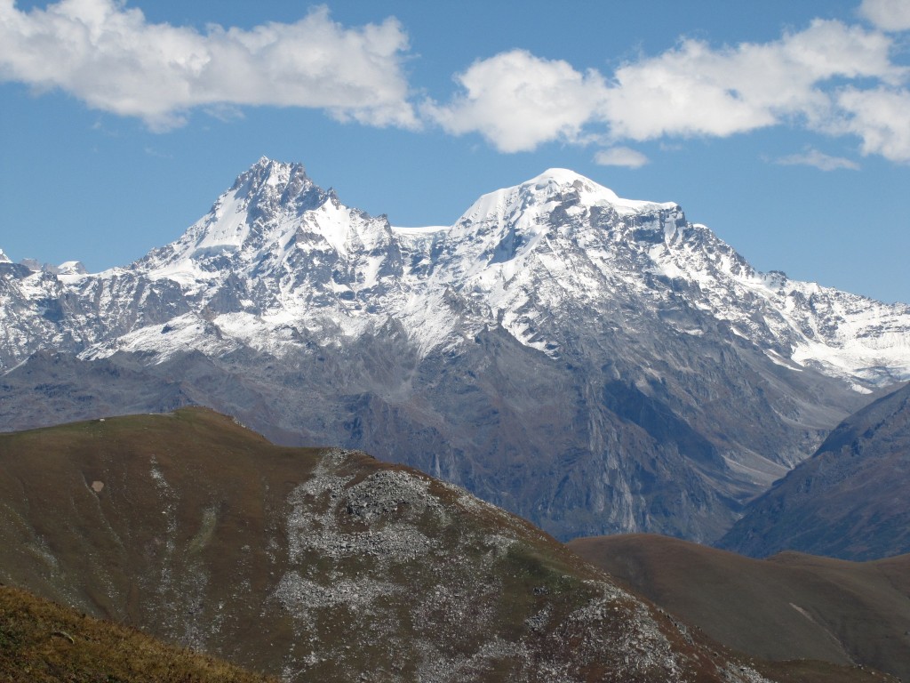 - Indrasan(L) and Deo tibba(R) to the east (not in Kangra but in Kullu), while climbing Kalihani pass. Image source : https://raobharata.files.wordpress.com/2012/10/img_2931.jpg