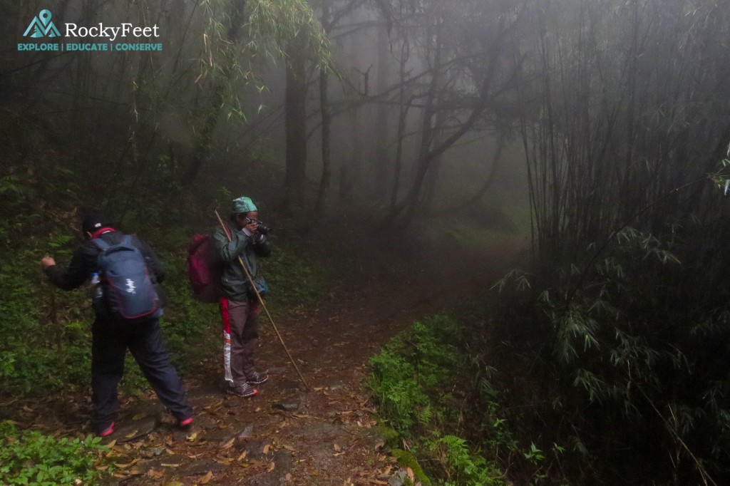 Fog hindered our morning birding session to some extent though we could still find quite a few birds and all new ones for the first timers. Red-billed Leoithrixes, Grey Bushchats, Blue whistling thrushes to name a few commoners. After taking a drop to Hilley, 11 kms away, we started our 5 km hike to Varsey through the Varsey Rhododendron Sanctuary.