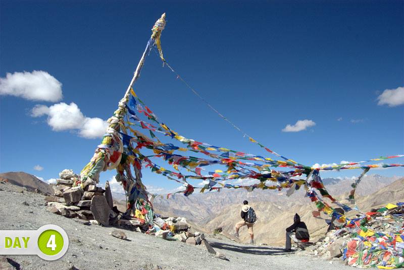 The last day walk on Markha Valley Trek, begins with a steep climb up. Leaving Nimaling behind, Kongmaru la pass (5265 m) is a difficult way up into thin air takes on an around 2 hrs.At the top, the pass offers a great view of Indus valley and Ladakh ranges. You can also see a wide array of wildflowers on the slope leading to the pass. Guide and porters become active to create communication with Leh, due to sudden mobile network availability on top.