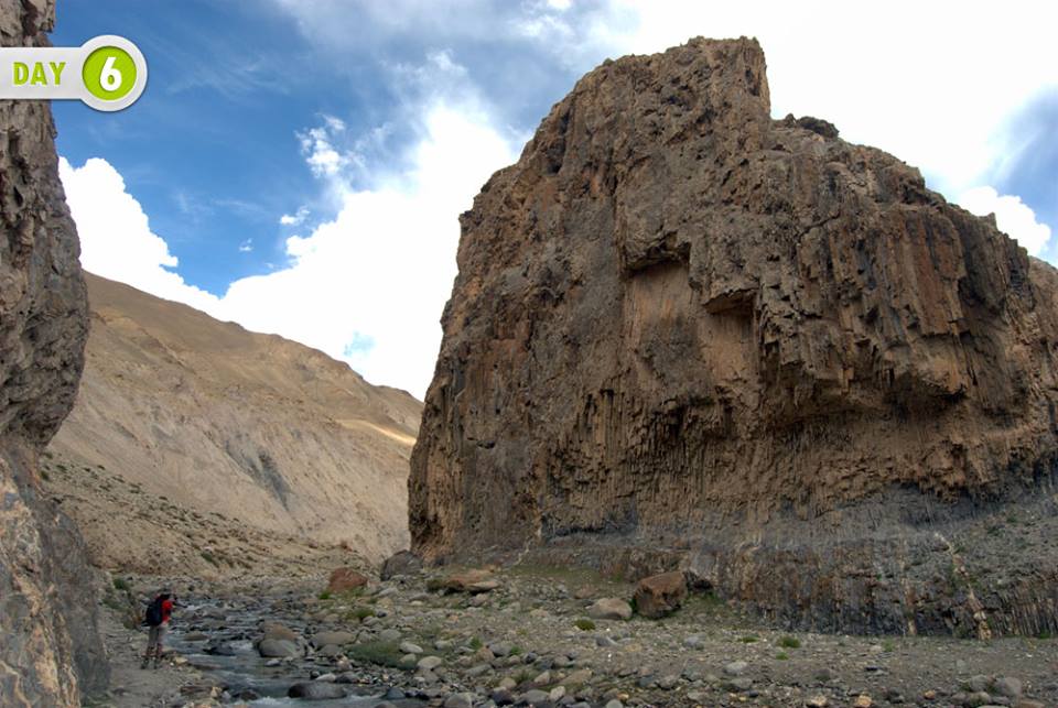 Now the trail enters into a narrow canyon after massive drops down on rocky steep. The brown and reddish giant rocks on both sides of canyon take you through another landscape pattern of Ladakh. The trail goes on steep downhill till Sukarmo. From Sukarno to Shang Sumdo it is a river bed walk. At Shang Sumdo trail connects to the motorable road to the highway which is about 8 km away. It takes about 2 hours to reach Leh from Shang Sumdo.